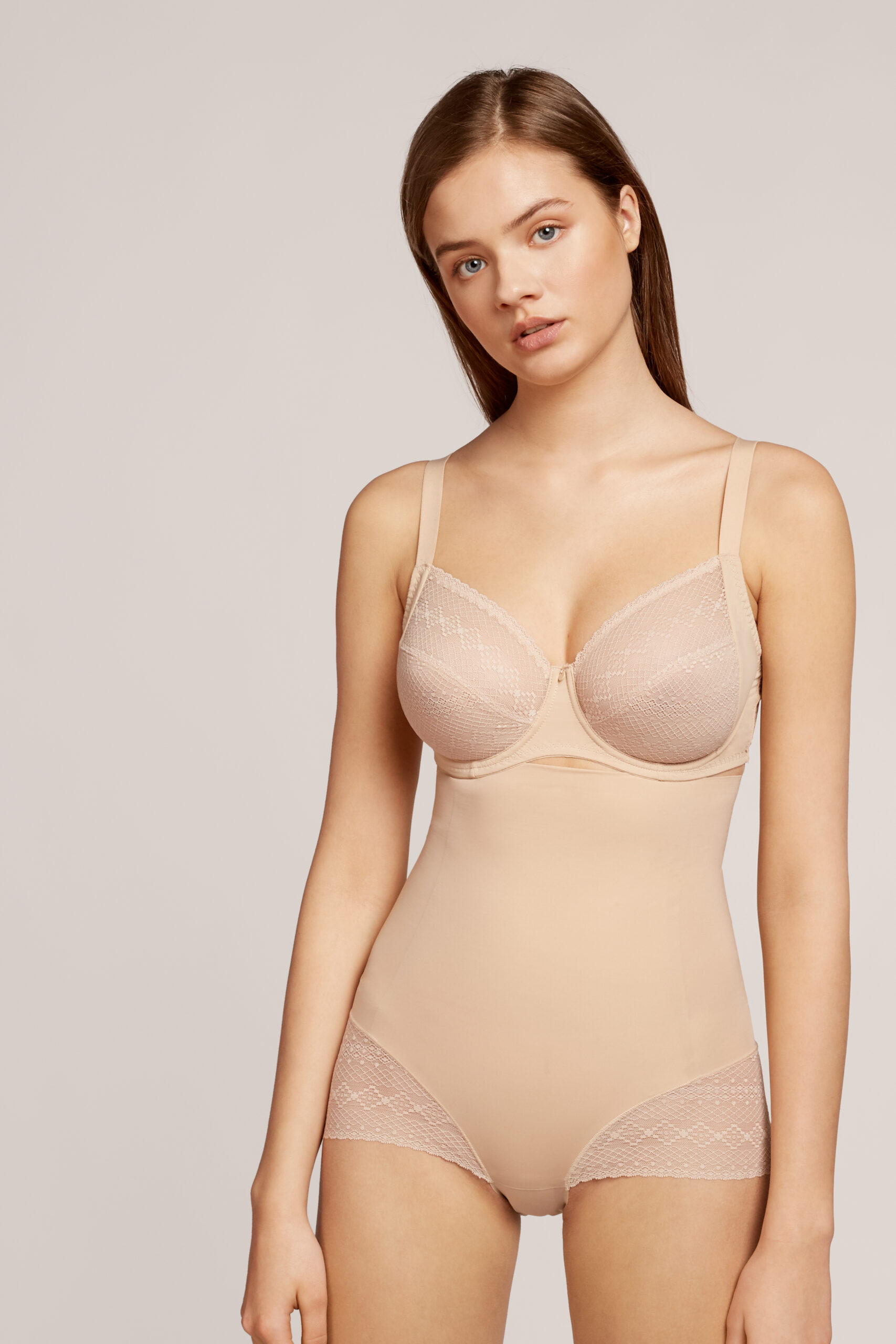 Sujetador máxima sujeción con aro y sin relleno en tejido de encaje. Pieza lateral para una mayor sujeción. Tirantes regulables extra suaves y espaldilla anatómica. Cierra de cuatro posiciones y detalle de botón decorativo en el centro del pecho. Disponible en copas C.